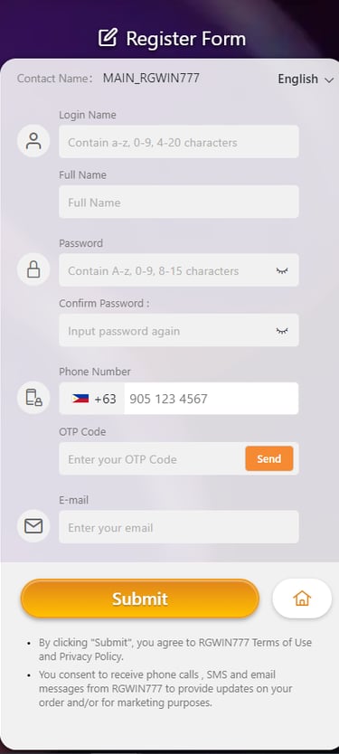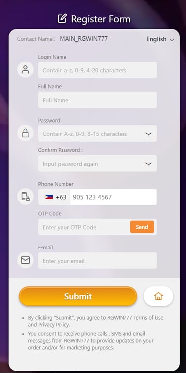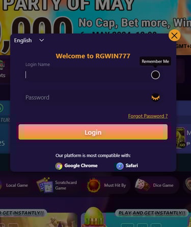 Step 3: Login and Explore Once your account is activated, you will receive a notification, and you can then log in using your username and password. For more information about how to watch or play RGWIN777 Online Casino, or if you need assistance, our support team is available to help you at any time.